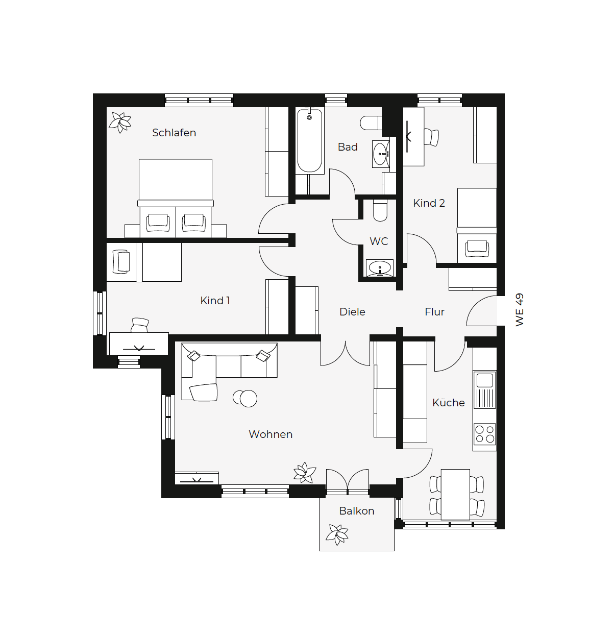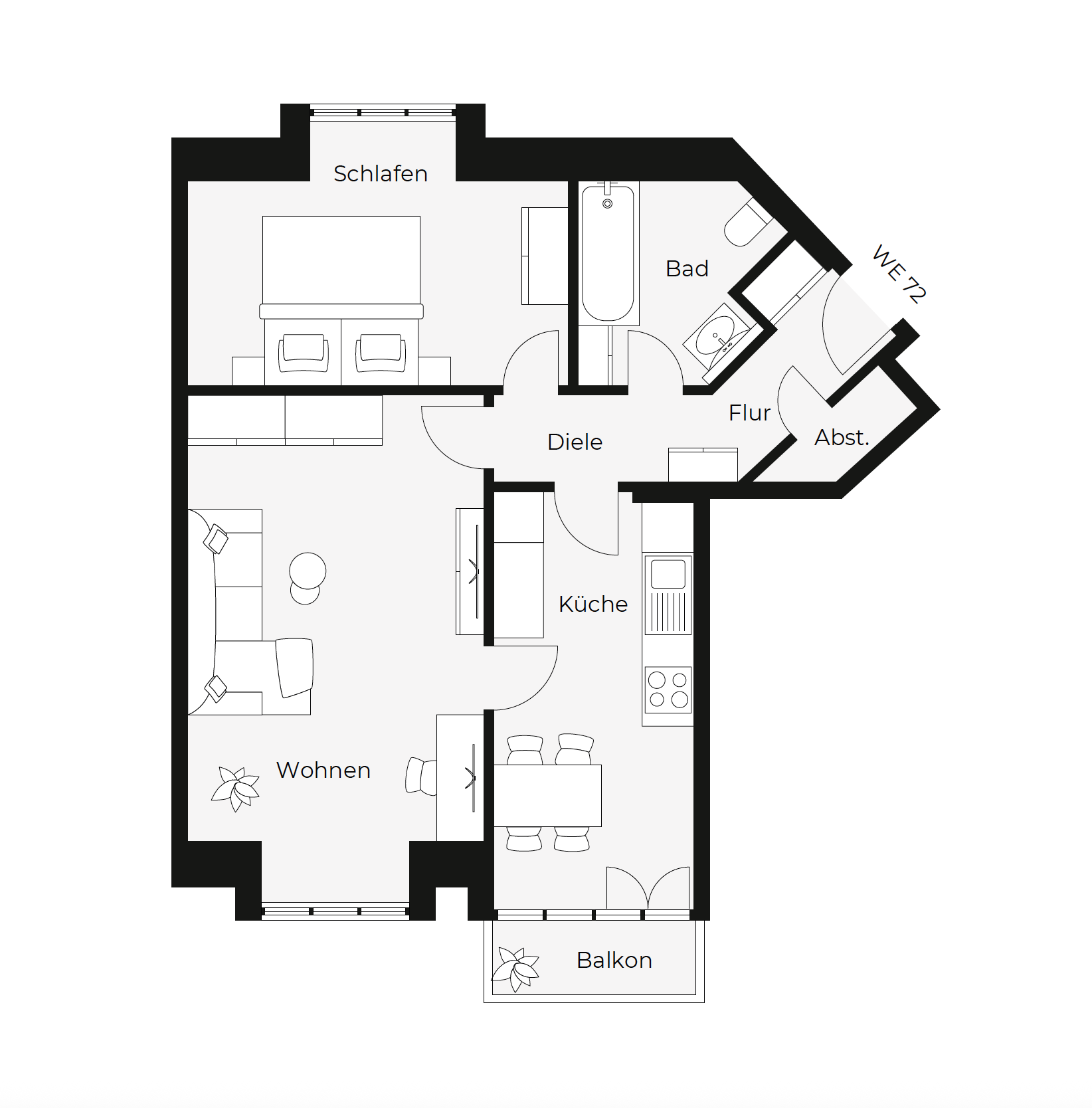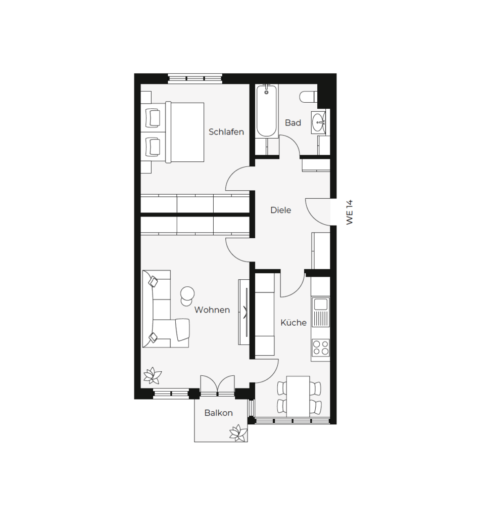 Die Wohnungen verfügen über praktische Grundrisse, die sich an modernen Ansprüchen orientieren und eine dauerhafte Vermietbarkeit sicherstellen. Zur Ausstattung zählen Laminatfußböden, geflieste Küchen und Bäder sowie Balkone. Selbstnutzer können sich in den optimal zugeschnittenen Größen ebenso verwirklichen wie Kapitalanleger.